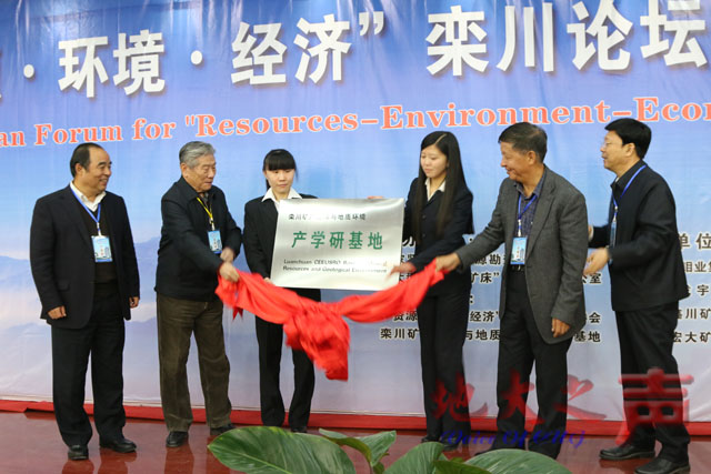 赵鹏大、王成善、关凤峻、盛国民为栾川矿产资源与地质环境产学研基地正式揭牌。