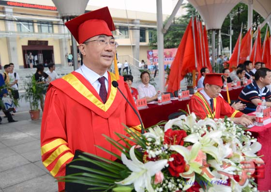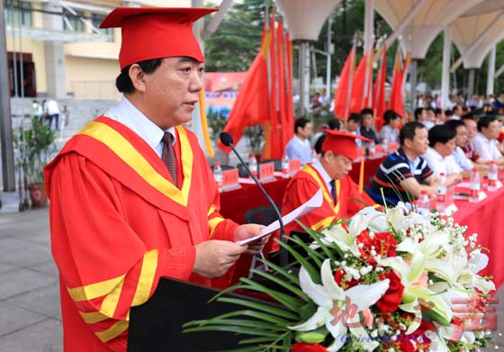王焰新表示,广大毕业生无论将来走到哪里,也无论怎么改变,“母校都会坚守着对你们的爱,母校永远在这里,守望着你们的远足、期盼着你们的归来!”