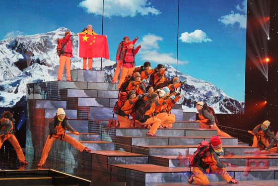 (通讯员翁华强 游萌 吕后郊 摄影唐少桥)5月4日晚,“五月的鲜花,我们的中国梦”——2014年全国大学生校园文艺会演在中央电视台一号演播大厅与全国观众见面,以米兰研究生陈晨同学成功登顶珠峰故事为原型的原创音乐情景剧《攀登》登上舞台。