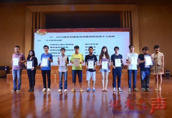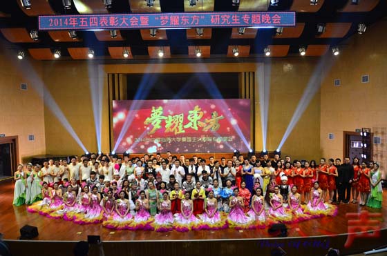 大会共颁发2013年“挑战杯”专项奖4项、话剧《大地之光》和音乐情景剧《攀登》专项奖4项,五四红旗团委、十大标兵社团、十大杰出青年、优秀共青团员等14项2014年五四表彰先进集体和先进个人奖项,20名教师获“研究生的良师益友”奖。
