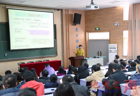 (记者徐燕 通讯员陈汉英 摄影张玉贤)3月14日,校党委副书记朱勤文为机关党员作党的十八届三中全会精神专题辅导报告,机关全体党员参加了报告会。