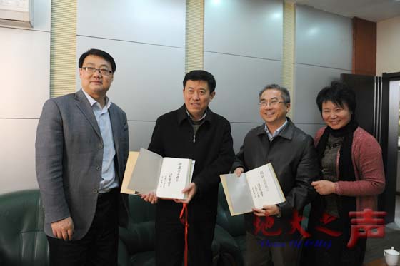 12月2日,人民教育出版社党委书记郭戈一行5人,将温家宝同志亲笔题字的《温家宝谈教育》一书赠予校党委书记郝翔、校长王焰新,表达对母校师生的亲切关怀和殷切期望。