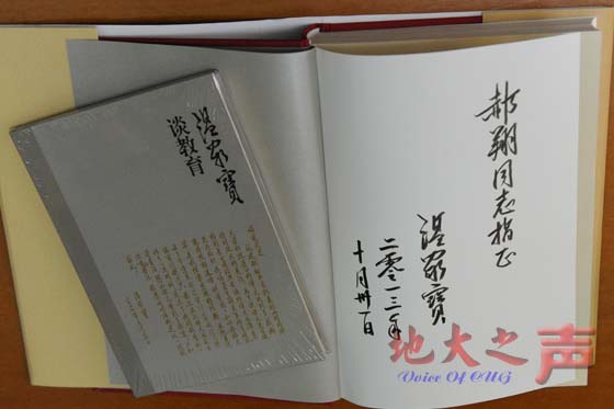 郝翔、王焰新代表全校师生向温家宝同志致以深深感谢和崇高敬意,并表示将带领全校师生开展好读书活动,深入学习温家宝同志教育思想,为建设地球科学领域世界一流大学努力奋斗。
