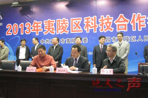 (通讯员吕世峰)11月9日上午,在宜昌市夷陵区科技合作签约仪式上,校长王焰新代表学校与夷陵区人民政府区长卢斌签署了战略合作协议。