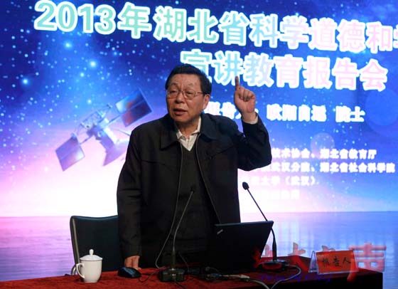(记者徐燕 通讯员陈华健 张妍婷)10月29日,湖北省科学道德和学风建设宣讲教育报告会在米兰弘毅堂隆重举行。中国科学院院士、著名天体化学与地球化学家、中国月球探测工程首席科学家、中国科学院地球化学研究所欧阳自远研究员应邀作宣讲报告。