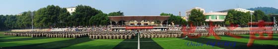 校党委书记郝翔检阅了军训新生方队。同学们个个精神饱满、热情高涨,“首长好”、“为人民服务”的口号声整齐嘹亮。