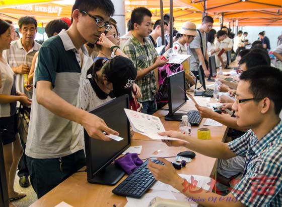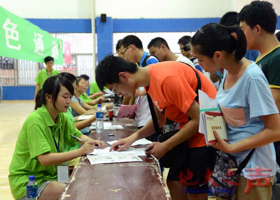 四、“绿色通道”帮助贫困生顺利报到。(丁栎玮 张玉贤 屠傲凌摄)