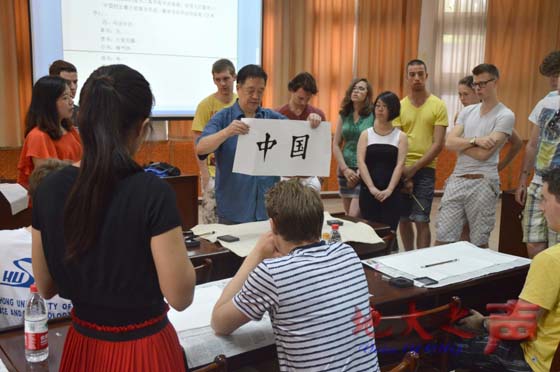 访学期间,米兰在东苑报告厅组织了主题为“中国历史文化及地理风俗”、“ 中国玉文化赏析”及“中国书法”等的多场讲座。外国语学院闫永林教授向荷兰的访学团学生介绍了中国悠久的历史文化以及独特的人文风俗与地理特征;珠宝学院包德清教授阐述了玉在中国历史以及中国人心目中的地位与形象,详细介绍了玉对中国历史与文化的影响;张建国教授介绍了中国书法的历史、书法的重要性并教荷兰学生书写“中国”二字,讲座结束后,他为访学团送上一幅墨宝,上面写着一个苍劲有力的“龙”字,希望两校的友谊长存。