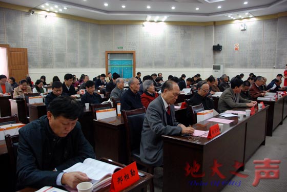 郝翔讲话。他说,今天正式开馆的电子校史馆和以校史为代表的校庆系列丛书,不仅展示了学校在不同时期与人民同甘苦、与祖国共命运、与社会同进步的发展历程,同时总结了学校在不同时期的办学经验和办学特色,是一笔非常宝贵的精神财富,它必将成为我们建设一流大学文化的重要组成部分,也必将为“建设地球科学领域世界一流大学”提供有力的精神支撑。他希望,全校广大师生能够以电子校史馆开馆和校庆系列丛书的出版为契机,更好地弘扬学校的优良传统,展现学校的人文精神,继续秉承“艰苦朴素 求真务实”的校训精神,励精图治,锐意进取,为早日实现“地球科学领域世界一流大学”的办学目标而共同奋斗。