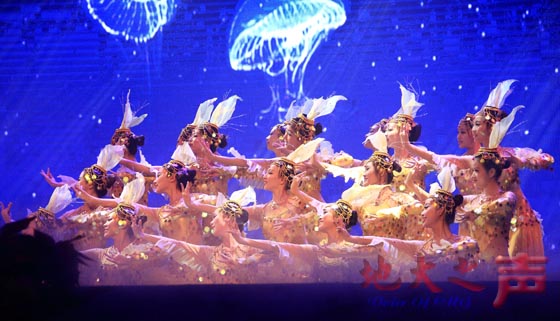 精彩的朗诵和合唱表演为晚会渲染了温馨的气氛,男女声二重唱《我的深情为你守候》和原创舞蹈《海之子》掀起晚会第一个高潮。地大南极科考队员、地空学院邓世坤教授也表达了对母校的衷心祝福。