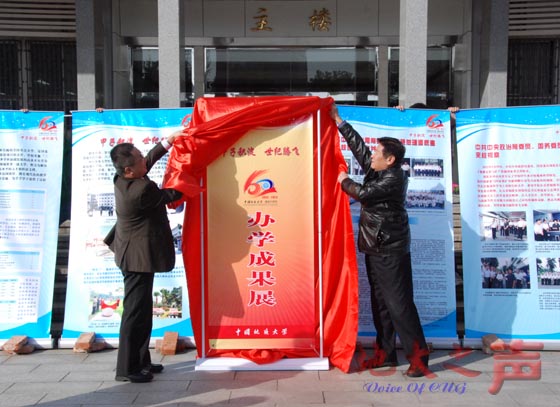 校长王焰新和赵鹏大为60年校庆办学成果展揭幕。