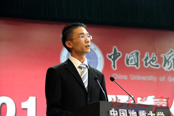 高年级学生代表、校研究生会副主席、工程学院屈若枫,新生代表、地球科学院李琴同学分别发言。他们表示,将学会做并做好学术研究,保持良好的身体素质,为未来的人生做好规划,做地大文化的见证者和传承者。