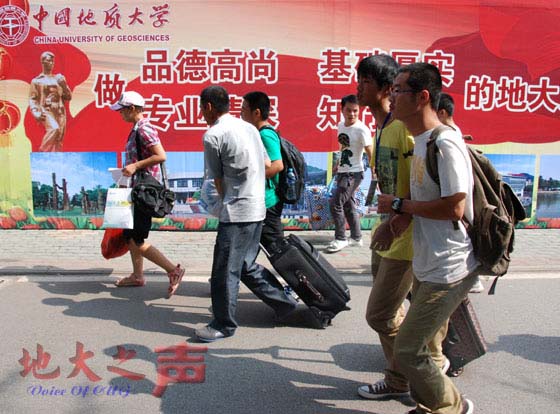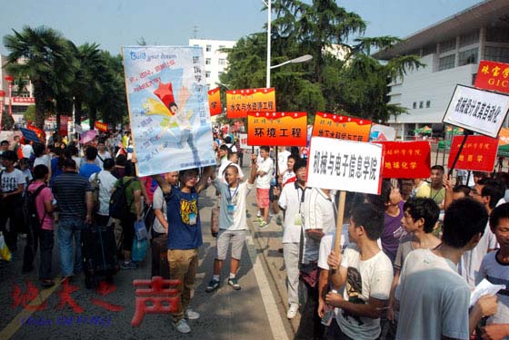三、图为新生们在热情的师哥、师姐们的引领下前往各迎新点报到。