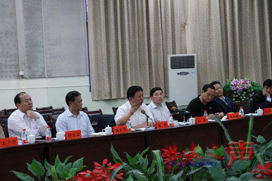 二、汪民一行听取学校工作汇报,校领导郝翔、王焰新等参加座谈。