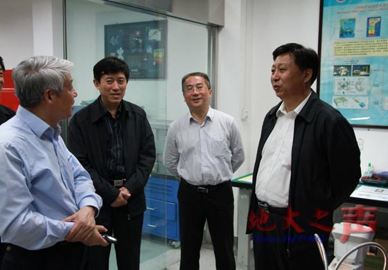 一、4月26日,国土资源部副部长、中国地质调查局局长汪民一行带领国土资源部、地质调查局相关司局的负责同志来校视察并座谈。图为汪民一行参观地质过程与矿产资源国家重点实验室 。