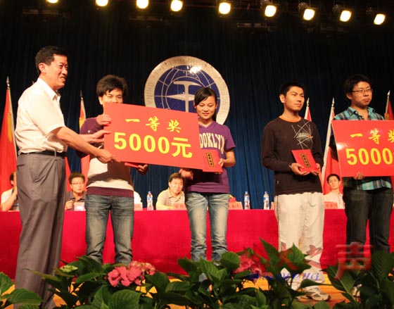 二、校级研究生先进集体、先进研究生党支部,校级优秀研究生标兵、校优秀研究生党员、优秀研究生、优秀研究生干部等一批先进集体和个人受到表彰。图为校党委书记郝翔为获第七届全国研究生数学建模竞赛全国一等奖的团队颁奖。