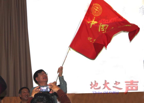 三、中国登山协会副主席、联谊会新任会长李致新校友讲话,并接过会旗。