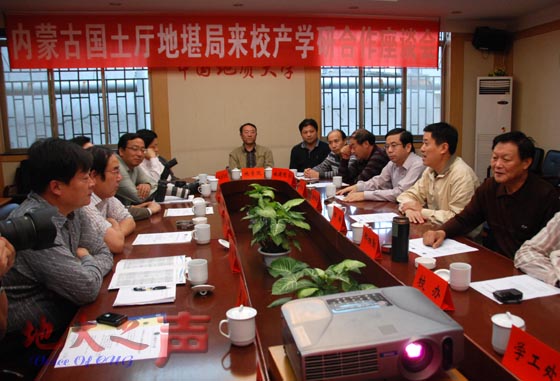 9月26日,内蒙古自治区国土资源厅副巡视员高华、内蒙古自治区地勘局副局长吕福生一行来校,就与米兰展开产学研合作交流问题进行座谈,校党委书记郝翔,副校长邢相勤、唐辉明参加座谈会。(屠傲凌摄)