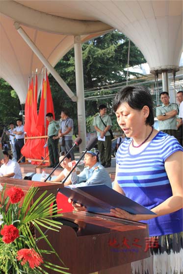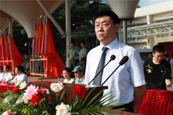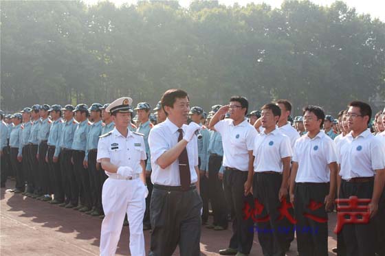 七、海军工程大学训练部部长高敬东少将做2010级地大新生军训总结讲话。