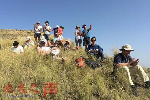 2015年9月,地学院博士生李明松(右二)在西西里岛考察天文旋回地层学经典剖面