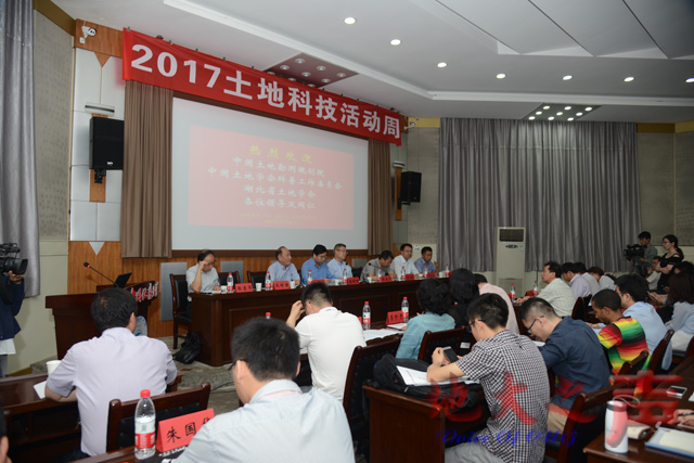 (地大之声记者徐燕 摄影张玉贤)5月23日,2017年土地科技活动周在八角楼启动。副校长唐辉明,中国土地勘测规划院副院长张建平,湖北省国土资源厅党组成员、副厅长邹清平,来自中国土地勘测规划院、湖北省国土资源研究院、中国土地学会科普工作委员会、湖北省土地学会以及米兰的近80名专家学者等参加了活动。