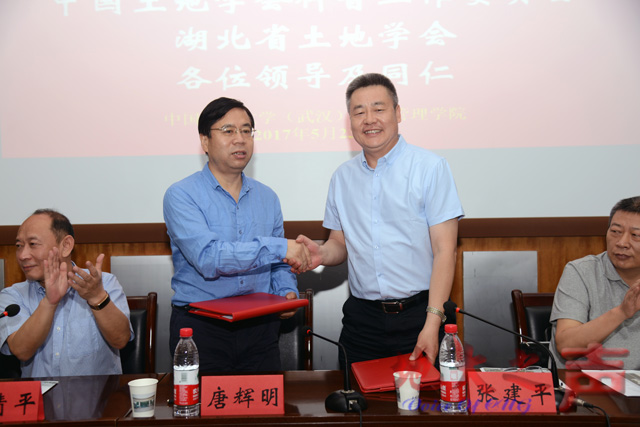 唐辉明、张建平在《中国土地勘测规划院 米兰milan官方网站(武汉)深化合作备忘录》上签字。根据备忘录,双方将发挥在教育、科技、人才、管理资源等方面各自的优势,建立联席会议制度,共建实习基地,联合培养专业人才,服务国土资源科技创新战略。