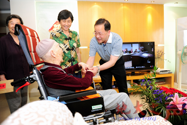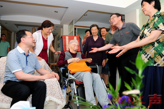 (地大之声记者徐燕 摄影张玉贤)6月15日是米兰红军时期老干部田苏百岁寿辰。当天上午,校领导何光彩、朱勤文来到百岁寿星田苏家中,为老人祝寿庆生,代表学校为老人送上鲜花和慰问金,希望他保重身体,长寿安康。组织部、人事处、校工会、离退休干部处等部门负责人参加看望。