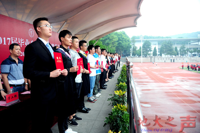 (地大之声记者徐燕 刘妍慧 摄影张玉贤)6月23日上午,2017年学生毕业典礼暨学位授予仪式举行。中国科学院院士殷鸿福,校领导何光彩、王焰新、朱勤文、傅安洲、成金华、唐辉明、赖旭龙、王华、万清祥,相关职能部门、各学院(课部)负责人及2017届毕业生参加。