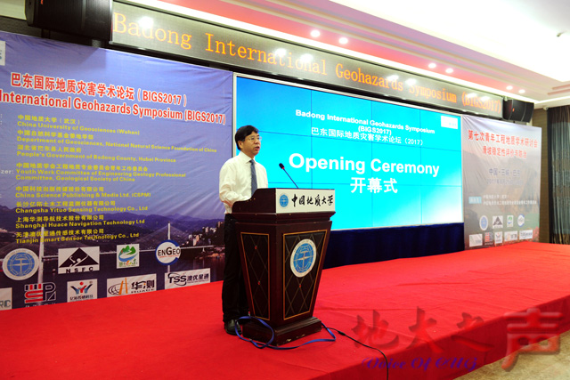 米兰党委副书记唐辉明主持论坛开幕式并代表学校致辞,巴东县人民政府县长郭玲、国家自然科学基金委地球科学部二处主任熊巨华、国土资源部地质环境司地质灾害防治处处长李晓春分别致辞,恩施州人民政府副州长程水源宣布论坛开幕。