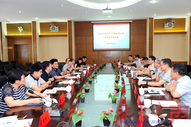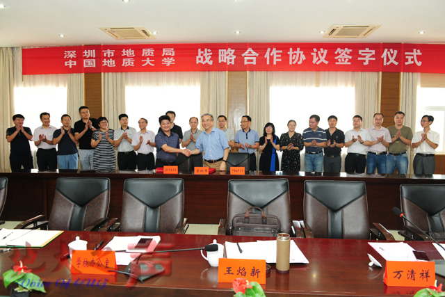 王焰新代表学校对周金文一行回到母校合作交流表示欢迎。他希望,双方以此次签署合作协议为契机,发挥各自技术优势和人才优势,加强地质人才队伍建设,重点在城市地质调查、地下空间、地质灾害、地质装备等领域联合攻关,努力为深圳市经济社会发展作出更多贡献。