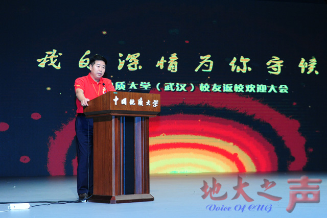 1983级校友、阿克苏地委委员、行署副专员郭齐军代表返校校友发言。他深情回忆了在校期间的学习和生活,感谢母校的教育培养,祝愿母校早日实现“地球科学领域世界一流大学”的宏伟目标。