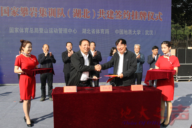 李致新、胡功民在共建协议书上签字。根据协议,国家体育总局登山运动管理中心负责国家集训队监管,湖北省体育局提供国家集训队训练的属地保障和负责国家攀岩集训队的运营。双方将充分协调各自资源,争取全社会的支持,共同为取得奥运会攀岩参赛资格而努力,力争在东京奥运会上取得优异成绩。