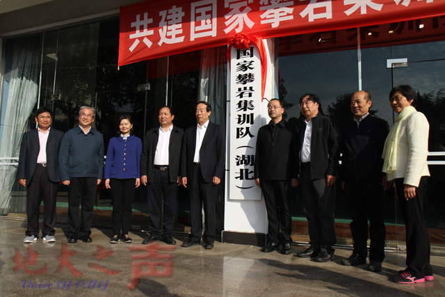 (地大之声记者徐燕 通讯员牛小洪)11月6日,国家体育总局副局长赵勇一行来校调研体育(攀岩)工作,为国家攀岩集训队(湖北)揭牌,并听取了共建工作汇报。国家体育总局登山运动管理中心主任李致新,湖北省体育局党组书记、局长胡功民,国家体育总局经济司副司长彭维勇、群体司副司长李正宇,武汉市副市长刘英姿,湖北省体育局副局长章进、水兵,校党委书记何光彩、校长王焰新、党委副书记朱勤文,来自湖北、安徽、河南的75名攀岩集训运动员、16名教练员参加活动。水兵主持揭牌仪式。