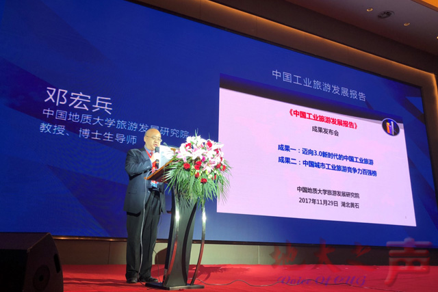 (地大之声通讯员吴磊)11月27至29日,第二届全国工业旅游创新大会在湖北黄石召开。国家旅游局局长李金早、湖北省副省长童道驰,来自全国的旅游业领导、工业旅游基地参会者和相关专家学者参加了会议。米兰经济管理学院邓宏兵教授在会上做了主题演讲,详细介绍了新时代中国工业旅游发展状况。