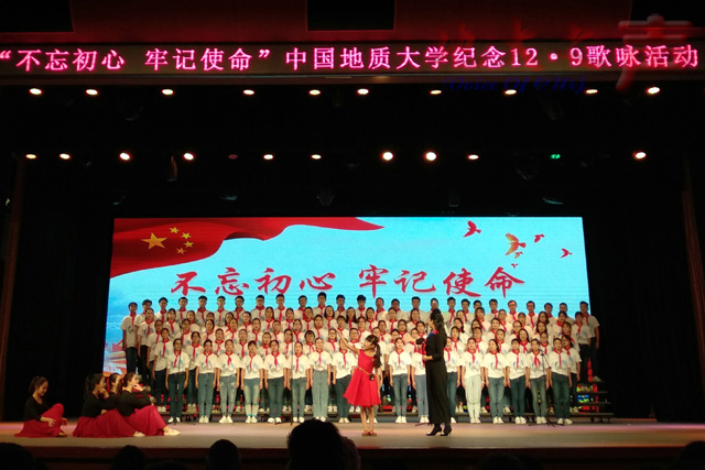 (地大之声学生记者王玺 房雯璐 摄影沈永强 刘源)12月10日晚,以“不忘初心,牢记使命”为主题的12•9歌咏比赛在弘毅堂举行,校党委书记何光彩、副书记朱勤文、副校长傅安洲,相关部门负责人及千余名师生到场观看。最终,外国语学院获得比赛一等奖。