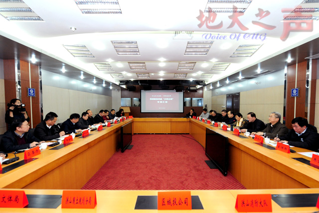 (地大之声记者庞伟红 摄影张玉贤)12月20日,洪山区区委书记杨泽发,区长林文书,区委常委、区委办主任王高辉,副区长杨海松一行来校调研,就如何更好地深入推进区校共建“大学之城”建设进行调研座谈。校党委书记何光彩、校长王焰新、副校长赖旭龙,相关部门、学院负责人参加座谈。校党委副书记朱勤文主持座谈。