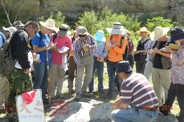 2015年冬,地质学教师团队部分成员与研究生在广西来宾铁桥剖面野外集体备课