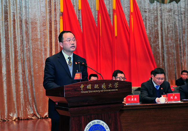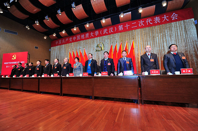 大会号召,学校各级党组织、全体党员和师生员工高举习近平新时代中国特色社会主义思想伟大旗帜,全面贯彻落实党的十九大精神,坚决维护以习近平同志为核心的党中央权威和集中统一领导,在教育部党组、湖北省委正确领导下,在学校新一届党委的带领下,深入开展“不忘初心、牢记使命”主题教育,坚持和加强党的全面领导,把党的政治建设摆在首位,切实增强“四个意识”,坚定“四个自信”,深入推进党风廉政建设和反腐败斗争向纵深发展,锐意进取,追求卓越,展现新气象、实现新作为,努力培养担当民族复兴大任的时代新人,办好人民满意的教育,为实现“地球科学领域世界一流大学”的地大梦而努力奋斗,为实现中华民族伟大复兴的中国梦做出新的更大贡献。