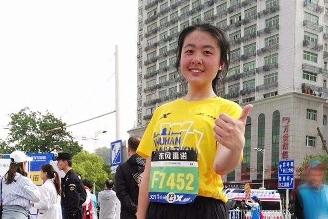 樊江岳今年20岁,2017年获得“校长奖学金”,担任班长、获评过军训标兵、优秀共青团员等荣誉称号。据介绍,这是她第一次跑十公里以上!