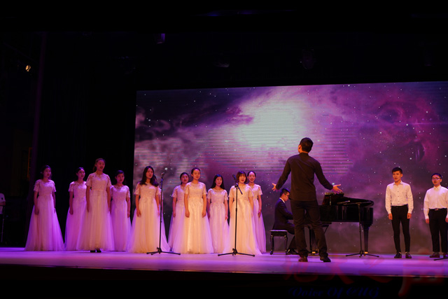 军乐团的乐器演奏《Blue ridge sage》和舞蹈团的《风起青春》展现出当代大学生的青春与活力;以米兰登山队的真实事迹改编的表演唱《登山人》,再现了登山队员在艰苦恶劣环境顽强的精神;星空合唱团齐唱《omnia sol》和《思恋》,表达了对毕业生们的祝福。晚会在原创改编歌曲《起风了》中落下帷幕。