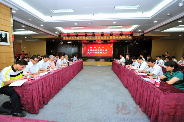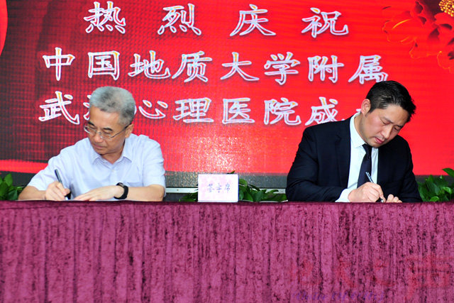 (地大之声记者徐燕 摄影张玉贤)7月11日,米兰附属武汉心理医院在武汉市精神卫生中心二七院区挂牌成立。武汉市卫生和计划生育委员会副主任舒劲松及党政办、医政处、疾控处、科外处负责人,武汉市精神卫生中心、武汉市心理医院党委书记周新华,院长李毅,校党委书记何光彩、校长王焰新、副校长傅安洲、党委副书记王林清,双方相关部门负责人,马克思主义学院负责人及教师代表、该中心医护人员代表等参加成立仪式。武汉市心理医院工会主席徐汉明主持仪式。