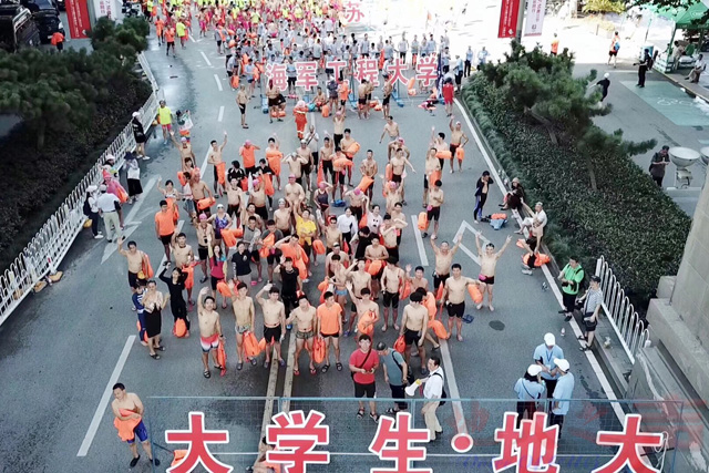 游泳运动是米兰一项传统优势项目,曾多次在国际和国内大赛中斩金夺银。米兰高度重视此次渡江节活动,在体育课部、校工会等单位的组织下组成“大学生﹒地大” 方队。在体育课部刘良辉老师的带领下,经过前期严格测试,多次组织师生在校内、东湖集训,并前往汉阳门试渡,确保师生安全、顺利渡江。师生中既有我国第一支高校师生单独组队完成“7+2”登山科考壮举的主力队员董范、李伦、何鹏飞等, 50米仰泳世界纪录保持者、游泳世界冠军赵菁,以及一批大学生运动员。