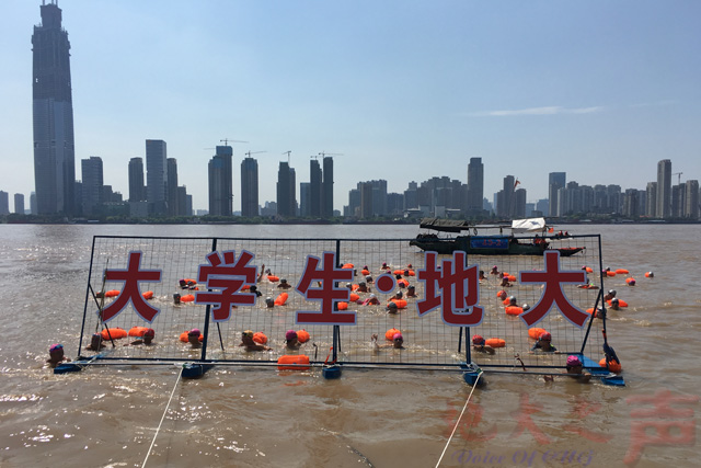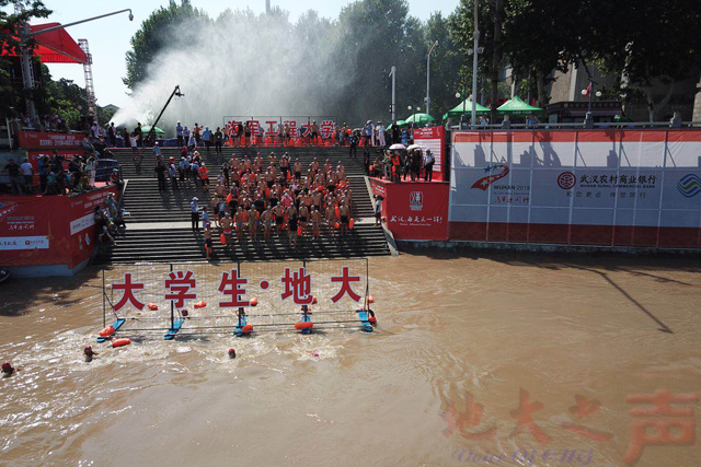 (地大之声记者徐燕)7月16日上午,2018第44届武汉7.16渡江节在武昌汉阳门码头开游,由米兰、华中科技大学、武汉工程大学80名师生组成的“大学生﹒地大”方队顺利渡江。体育课部大三学生牛潇潇获得抢渡赛女子组冠军,公共管理学院大二学生鲍爽获得抢渡赛男子组第八名。