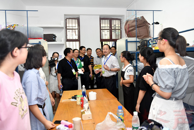 9月2日下午,校领导何光彩、王焰新、傅安洲、成金华、唐辉明、赖旭龙、王林清、刘杰及相关部门负责人,分别到西区、北区、东区新生宿舍看望新报到入学的2018级新生。