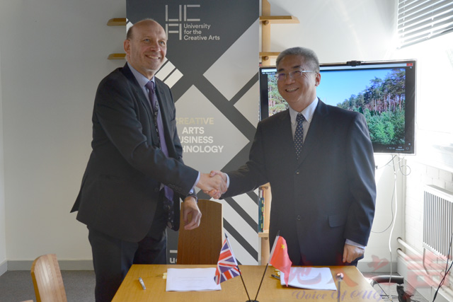 校长王焰新与英国创意艺术大学副校长艾伦•库克教授签署合作协议