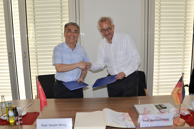 校长王焰新与德国亥姆霍兹波茨坦中心理事会主席莱因哈德•胡特尔签署合作协议