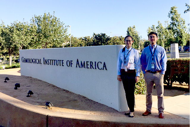 图为在GIA实习的王成思(左)和沈澈(右)