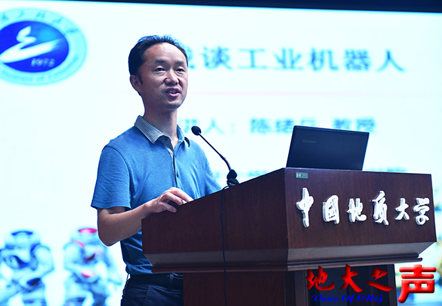 陈绪兵教授以“浅谈工业机器人”为题,介绍了机器人及其三原则、机器人的发展历程、串联机器人、并联机器人、机器换人与人机共融等五方面的内容。“中国制造2025”的核心就是智能制造、制造智能化,以推进智能制造为主攻方向,培育有中国特色的制造文化,实现制造业由大变强的历史跨越。