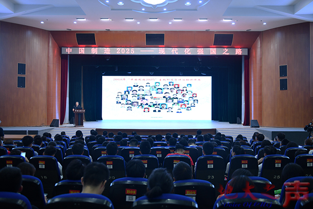 校长助理周爱国教授主持报告会并致辞。他说,青年学生是祖国的未来,是中国梦的追梦者和圆梦人,也是我国制造业未来的希望,我们要不断提高同学们对“中国制造2025”发展战略的兴趣和认知能力,增强同学们的科学素质,热爱祖国、立鸿鹄志、求真学问、做实干家,担负起社会主义建设者和接班人的光荣使命。