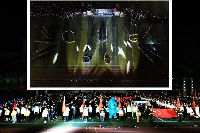 晚七点,伴随着嘹亮的《运动员进行曲》,32个方阵精神抖擞、各展特色,带着地大人的自信与豪迈、昂扬与激情依次入场。